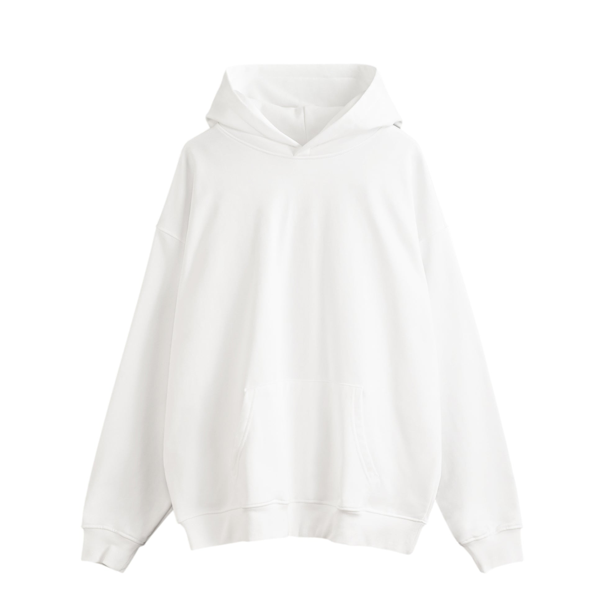 A simple hoodie that is soft to the touch, stretchy, and easy to mix and match. It has a loose silhouette with no drawstrings and a low shoulder line.
